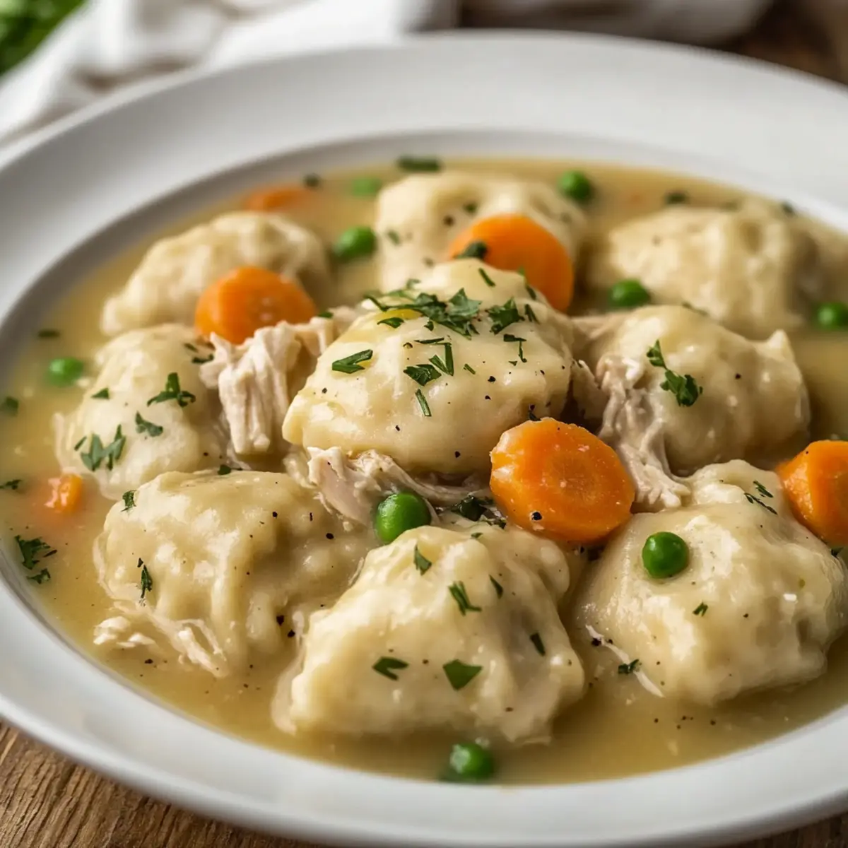 Flavorful Comfort: The combination of tender chicken and creamy broth with fluffy dumplings creates a rich, savory experience that reminds you of grandma’s kitchen.
