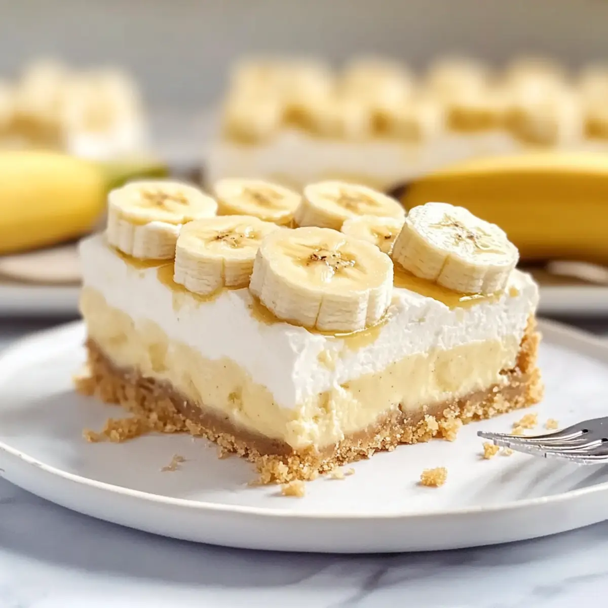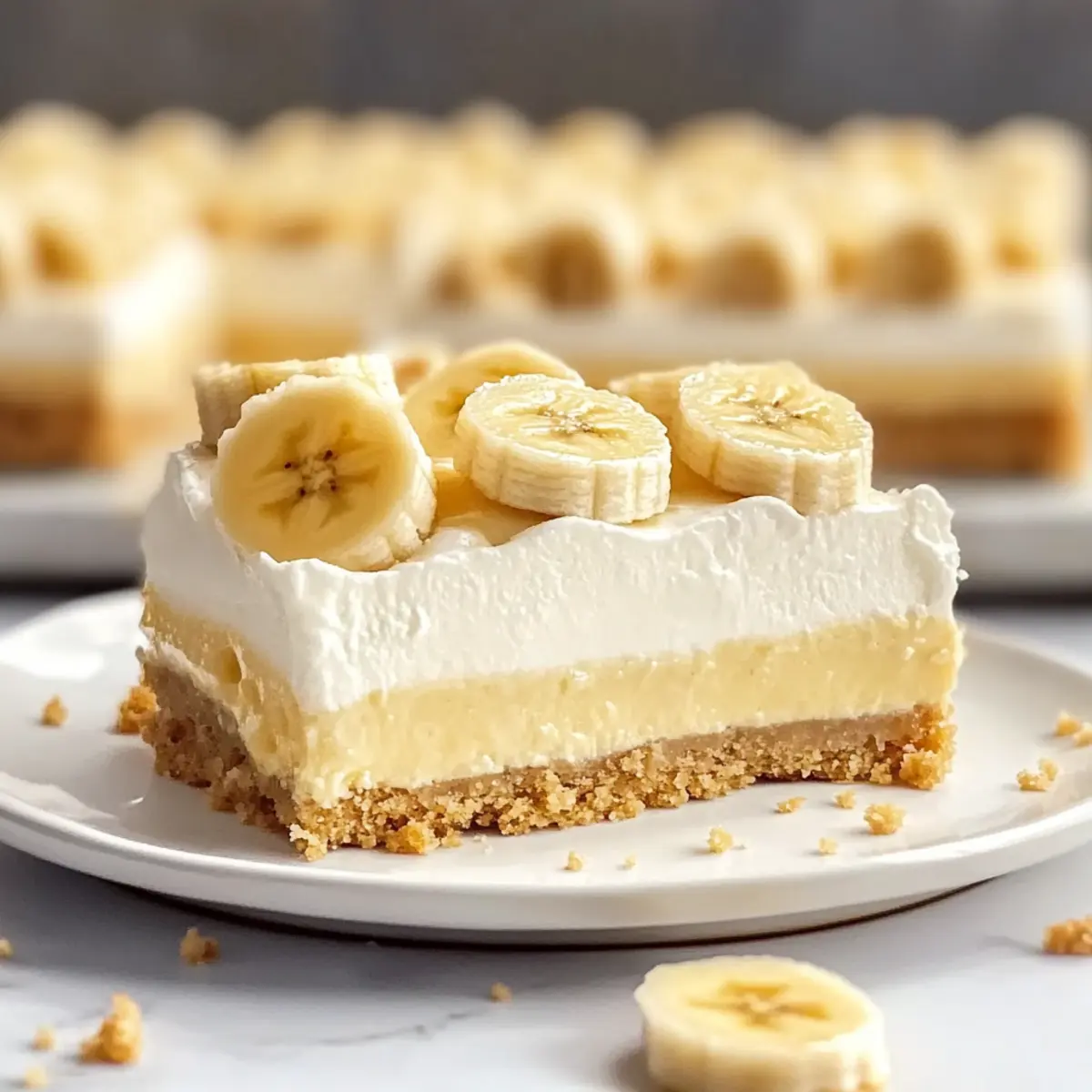 - Once the bars are fully set, remove them from the refrigerator. Spread an even layer of remaining whipped topping on top of the filling for an enticing creaminess. Optionally, create pretty swirls with the whipped topping for a decorative touch. Finally, top with freshly sliced bananas and a sprinkle of crushed vanilla wafer crumbs to add texture and visual appeal before serving.