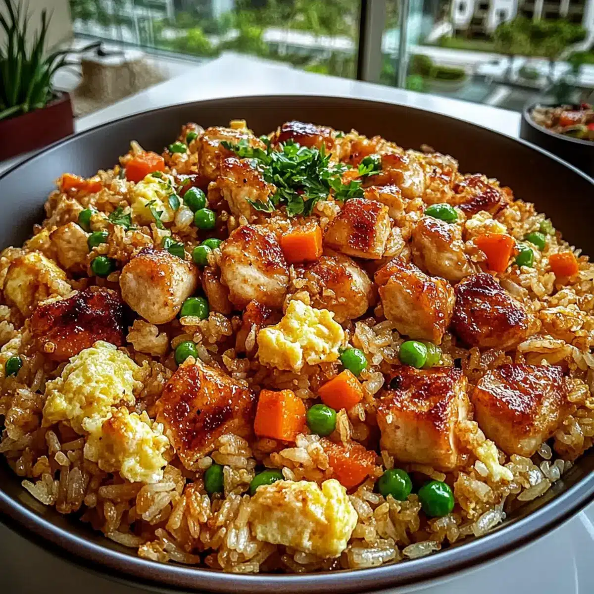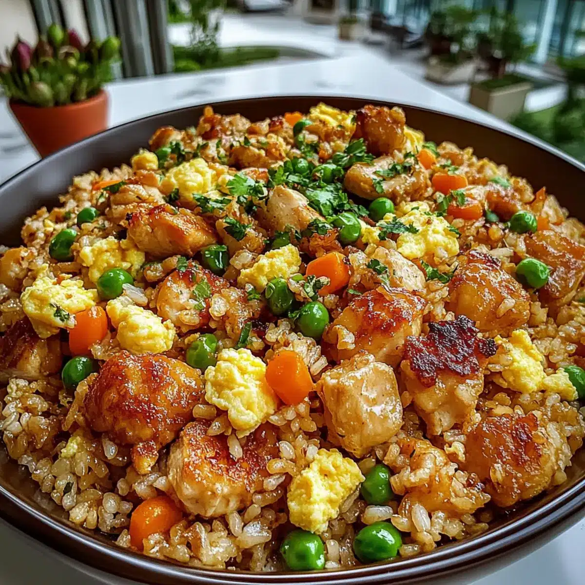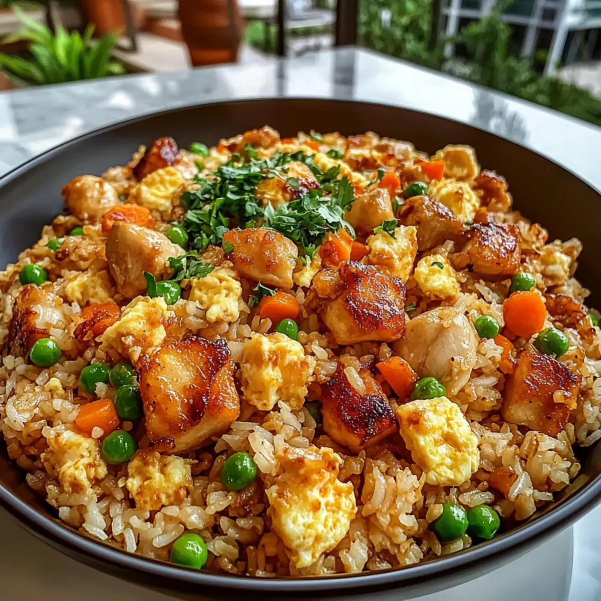 Return the seared chicken and scrambled eggs to the skillet, mixing them evenly into the rice and veggie mixture. Stir everything together gently to combine and reheat for another 2-3 minutes until everything is warmed through. The flavors will meld beautifully at this stage.