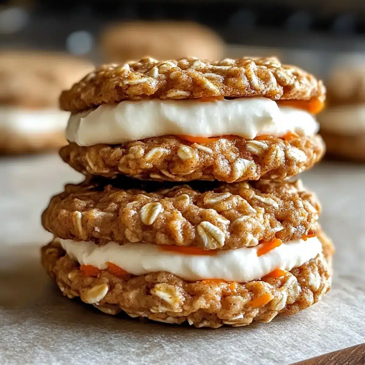 Reheating: If desired, gently warm in the microwave for about 10-15 seconds to soften the cream filling just before serving, bringing back that fresh-baked charm to your Carrot Cake Oatmeal Cream Pies.