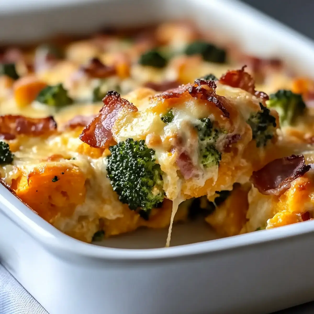 Cheesy Broccoli, Bacon & Sweet Potato Bake for Cozy Nights