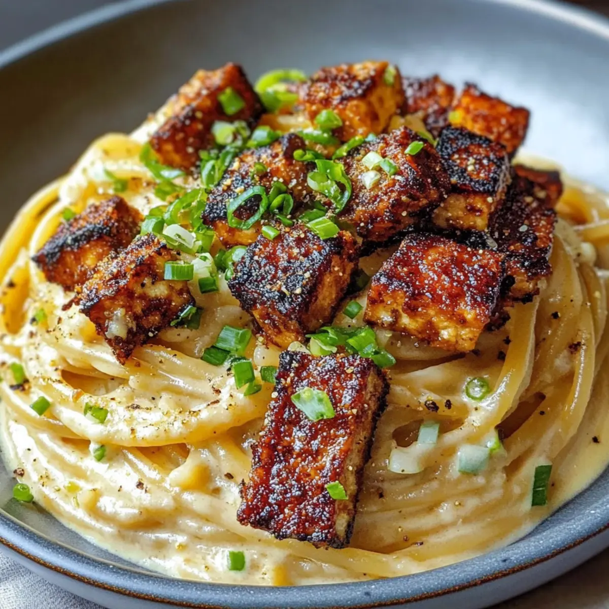 Miso Carbonara with Crispy Tofu Bacon for Cozy Nights