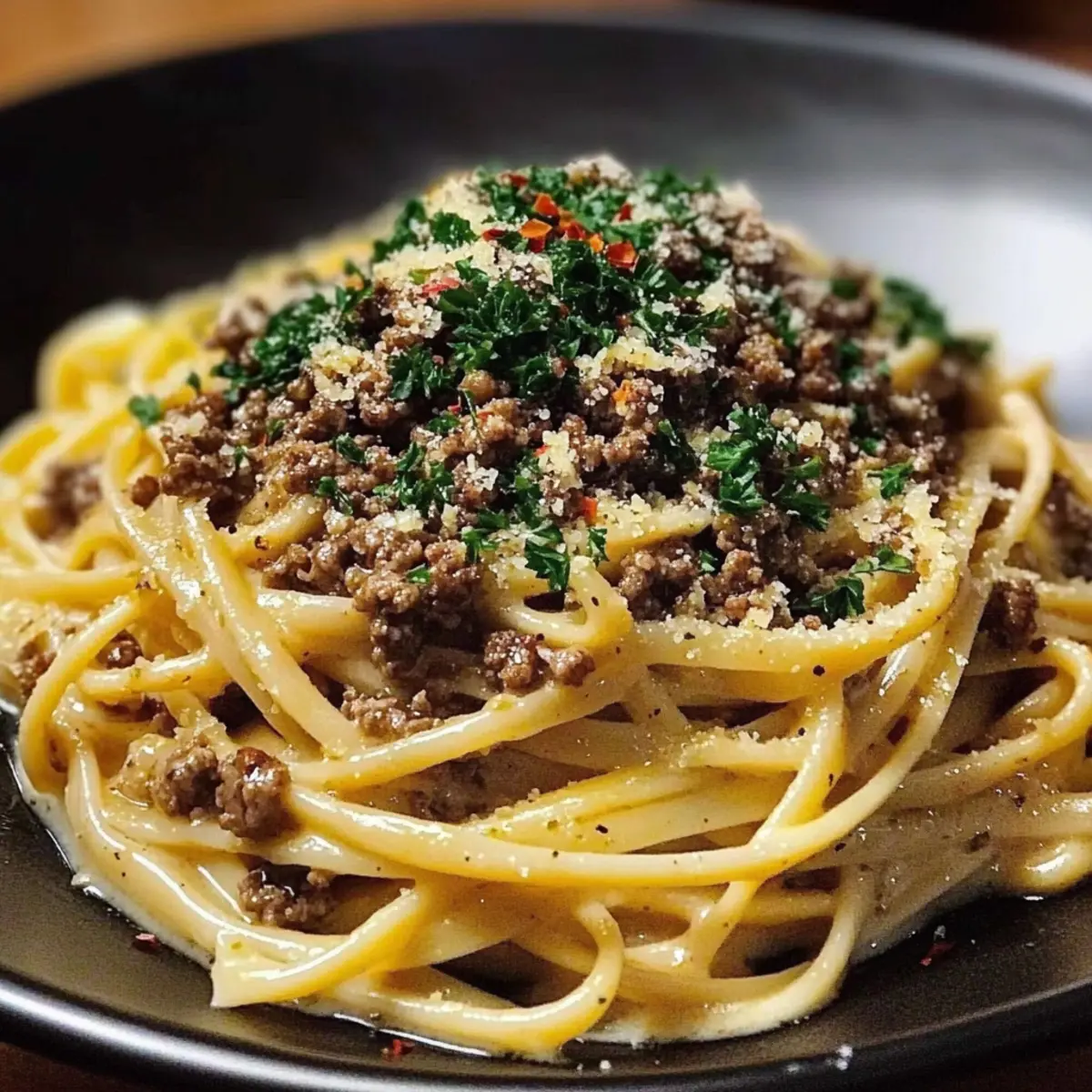 Creamy Parmesan Beef Linguine with Garlic Butter Sauce Bliss