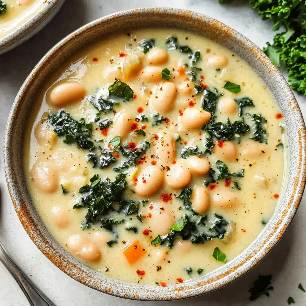 Creamy White Bean and Kale Soup with Cashew Cream Delight