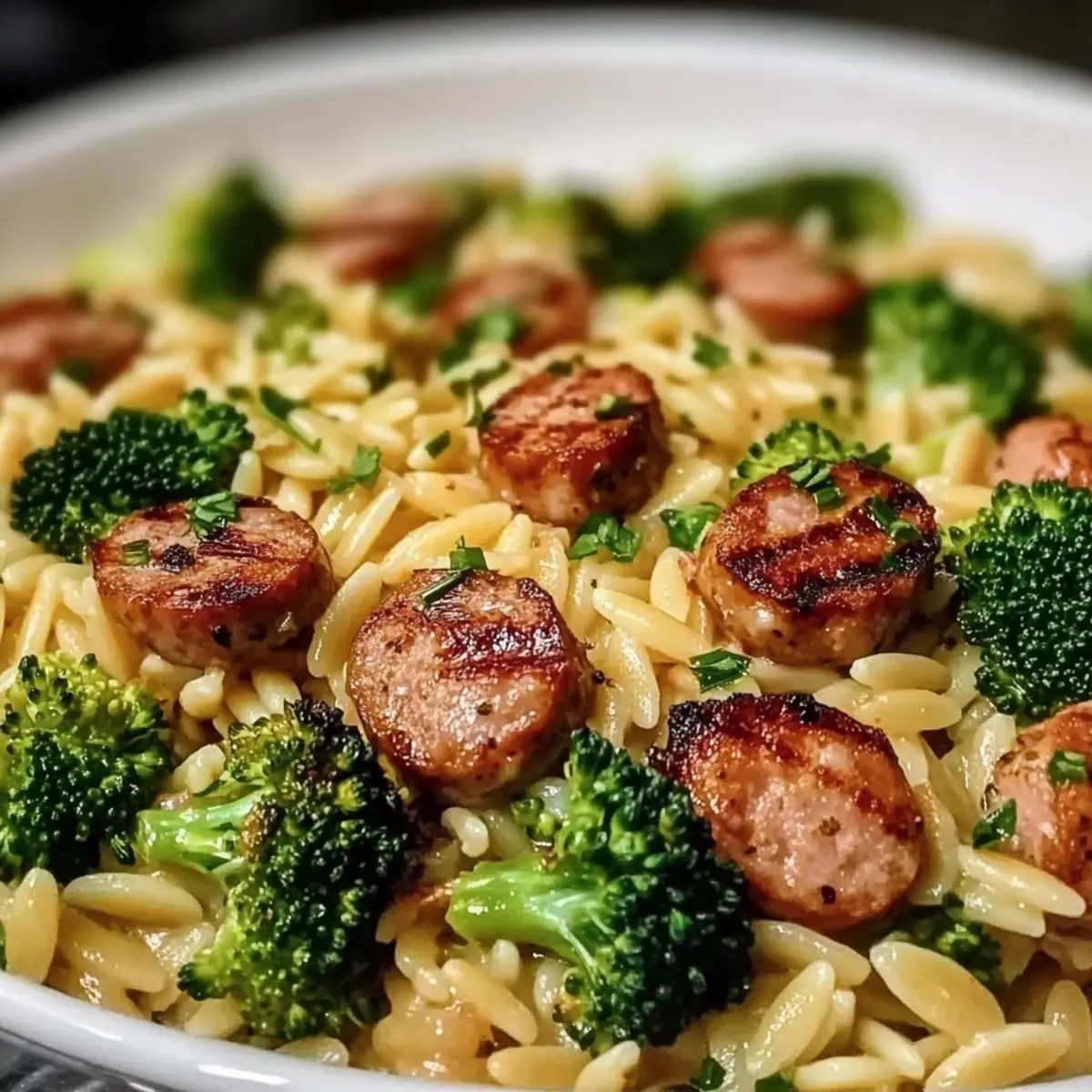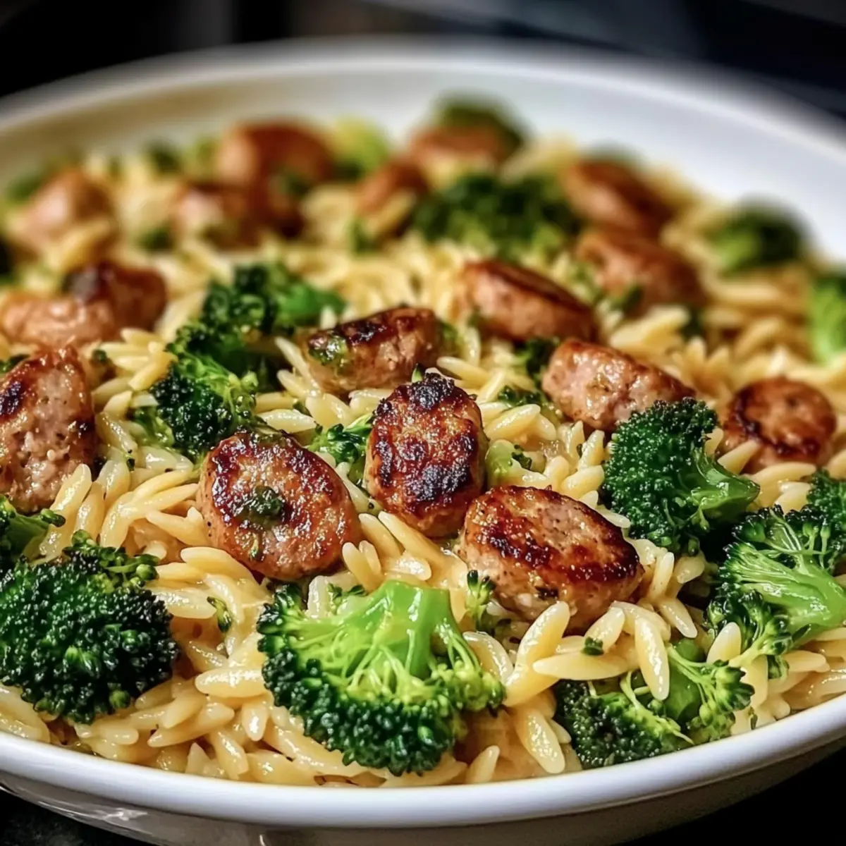 Flavorful Fare: The rich flavors of smoky sausage and fresh broccoli blend perfectly with the creamy orzo, ensuring every bite is satisfying and delicious.