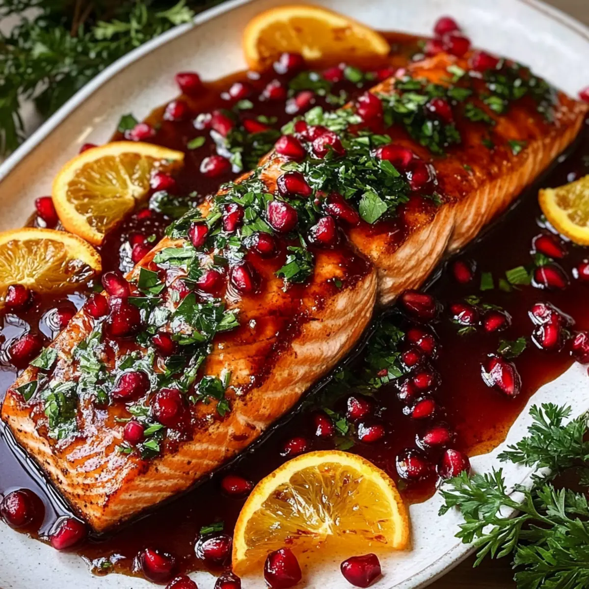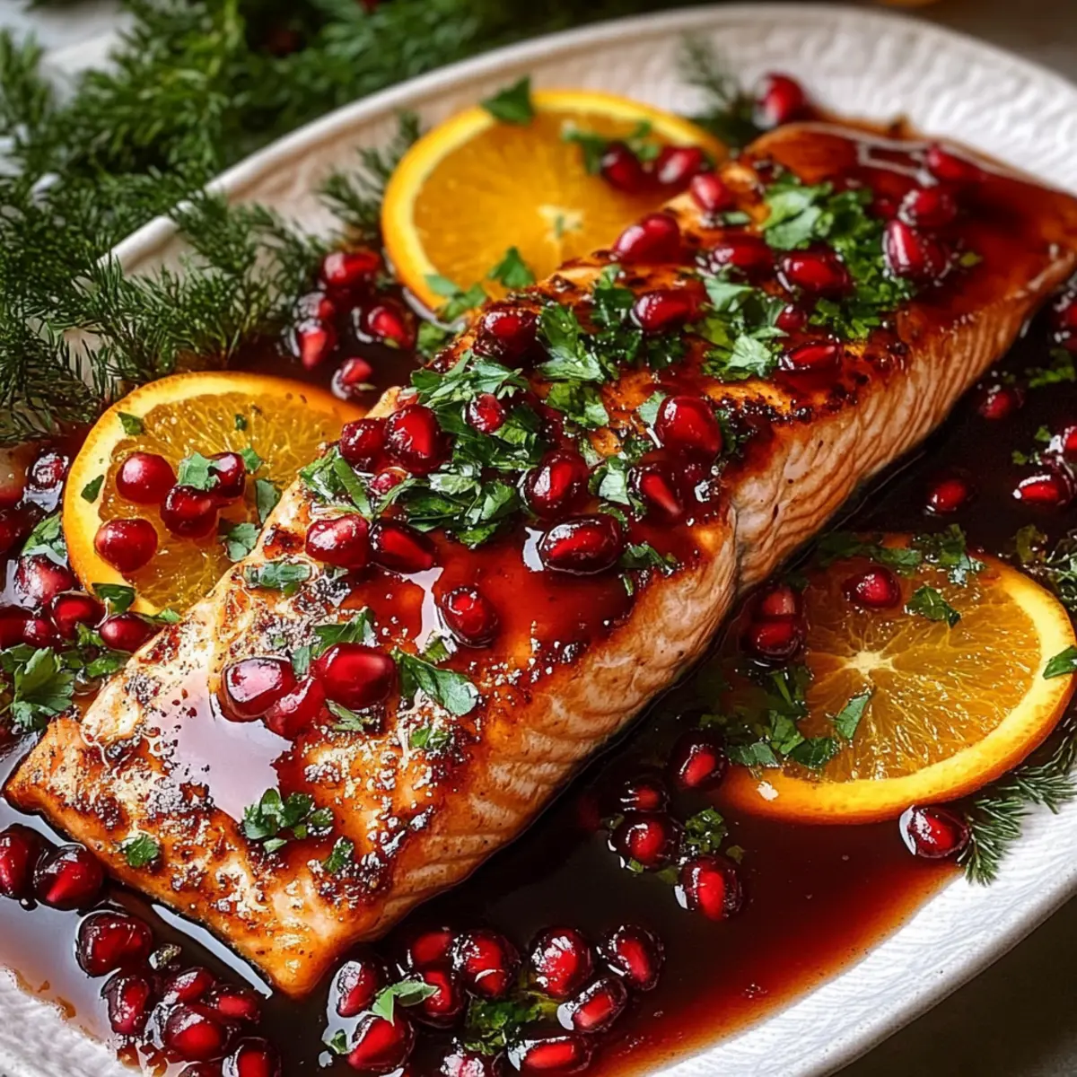 Festive Elegance: This Glistening Christmas Salmon with Pomegranate Glaze is the star of any holiday gathering, combining stunning presentation with mouthwatering flavor.