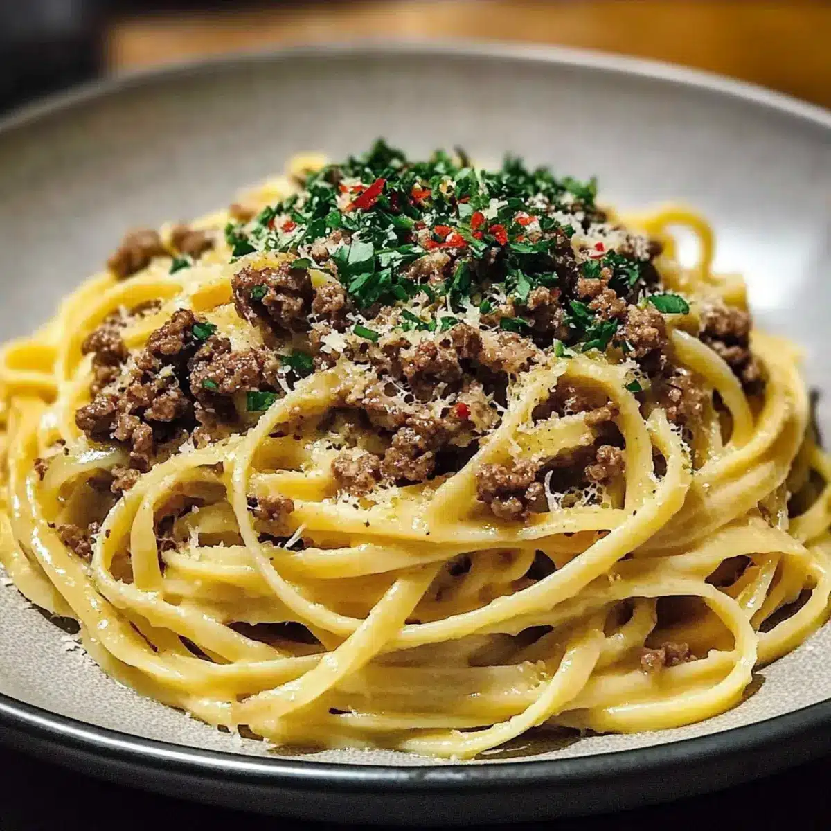 Creamy Parmesan Beef Linguine with Garlic Butter Sauce Bliss