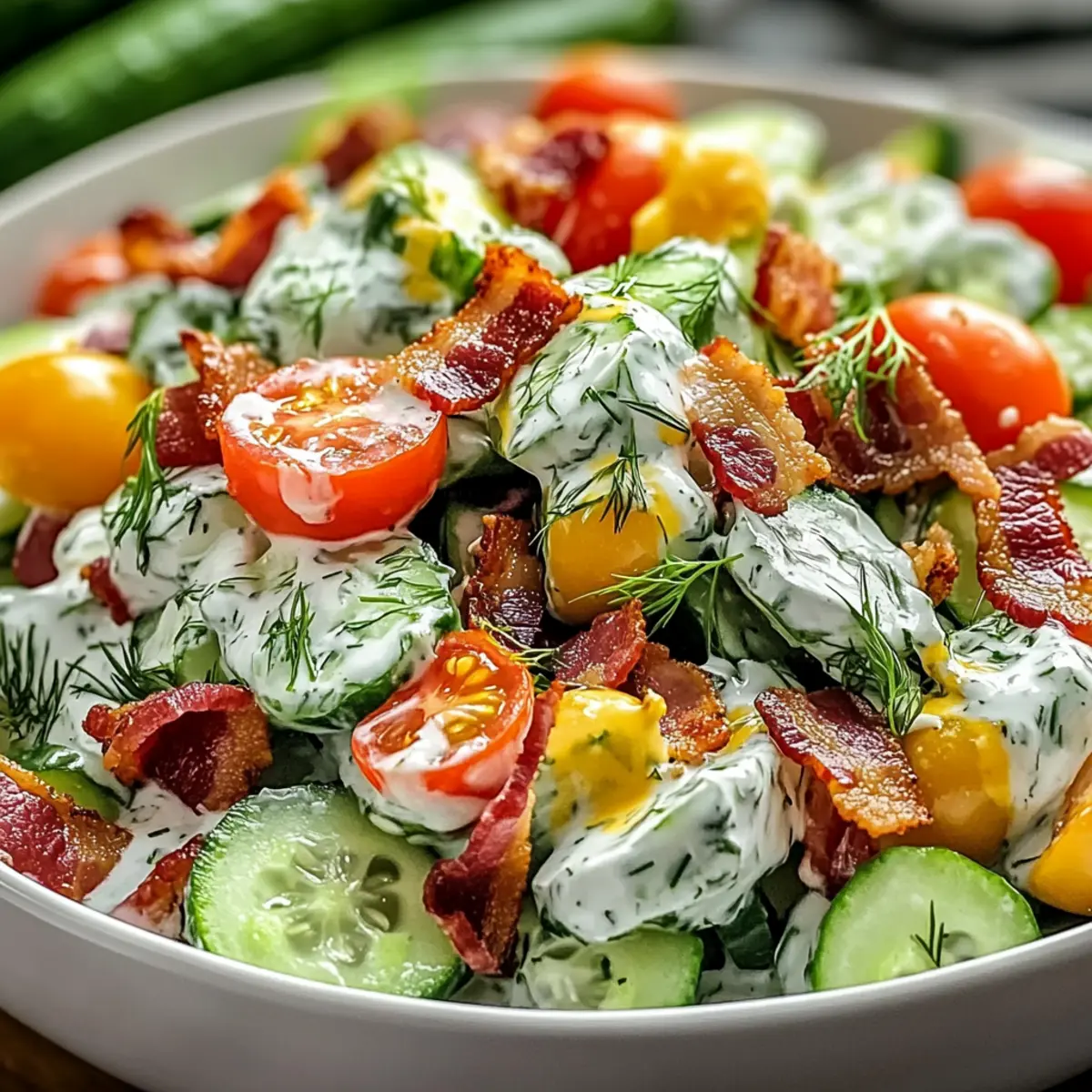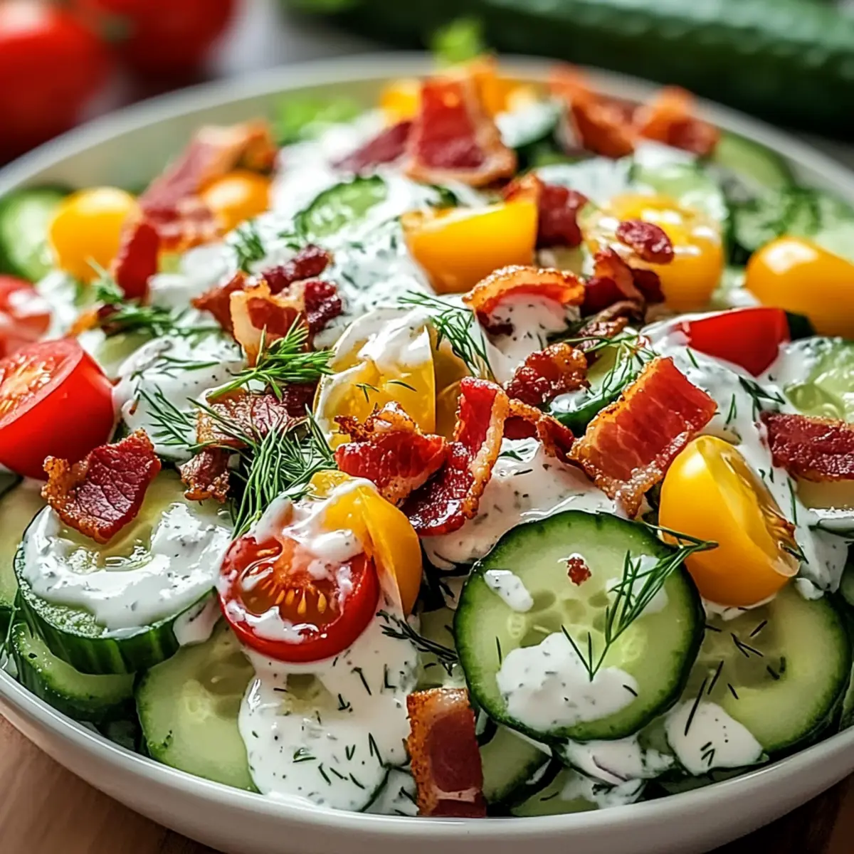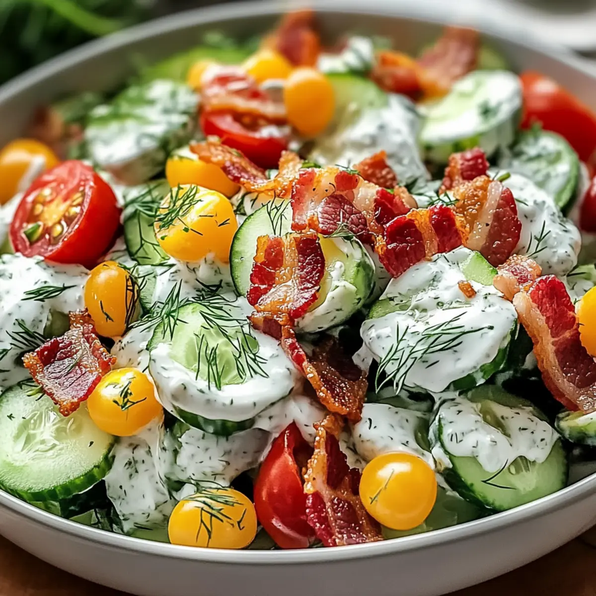 Definitely! This Cucumber Ranch Crack Salad can be made gluten-free by ensuring all ingredients (like the bacon and dressings) are labeled as such. If you or your guests have food allergies, substitute beef bacon with turkey bacon or another allergy-friendly option, and make sure to adjust for any dairy intolerances with non-dairy alternatives.