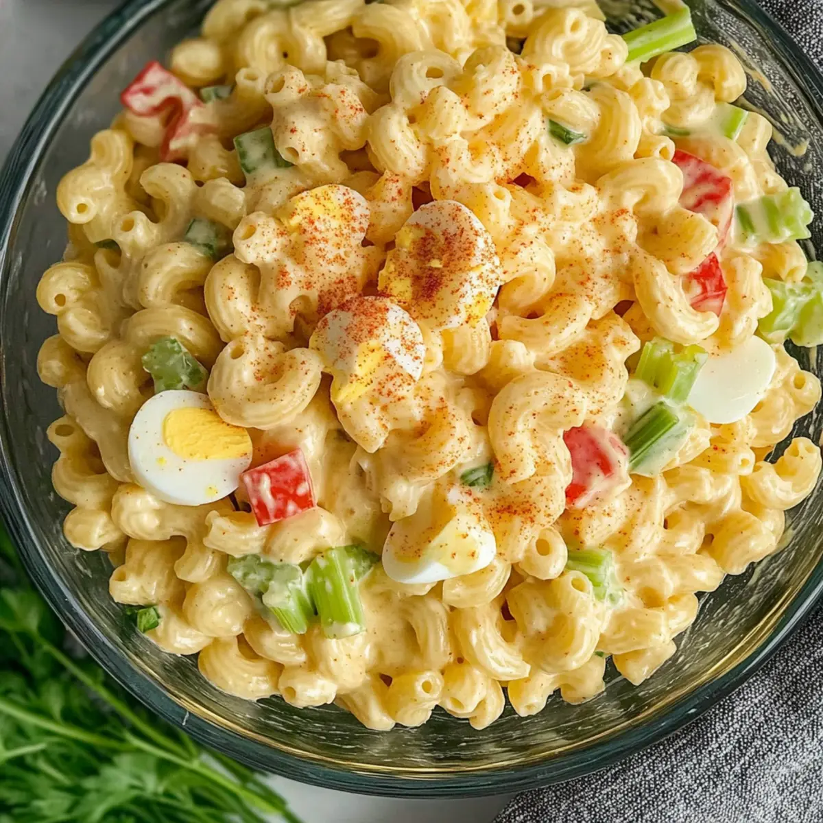 Perfect for busy weeknights or last-minute potlucks, the Creamy Deviled Egg Pasta Salad can be prepared ahead of time to save you effort. You can cook the elbow macaroni and hard-boiled eggs up to 24 hours in advance, storing them separately in airtight containers in the refrigerator. Combine the dressing ingredients and refrigerate them as well; this helps to maintain freshness. When you’re ready to serve, simply mix the pasta, chopped eggs, and vegetables with the dressing, and allow it to chill in the fridge for at least an hour before serving. This way, you’ll enjoy a flavorful and satisfying dish that’s just as delicious, effortlessly ready for your gathering!
