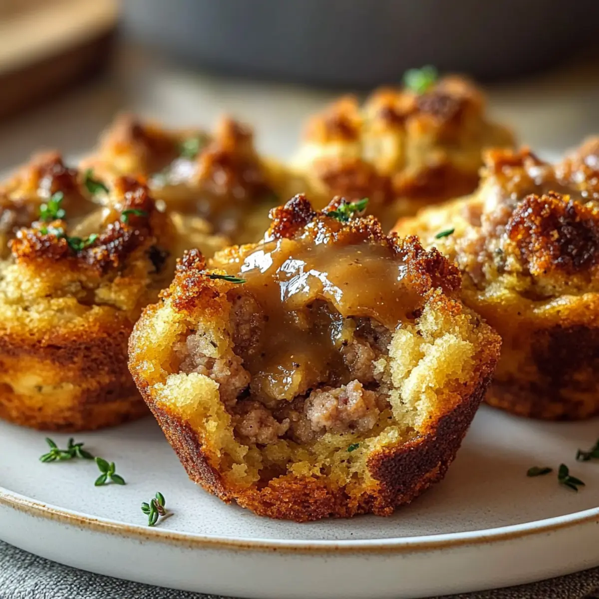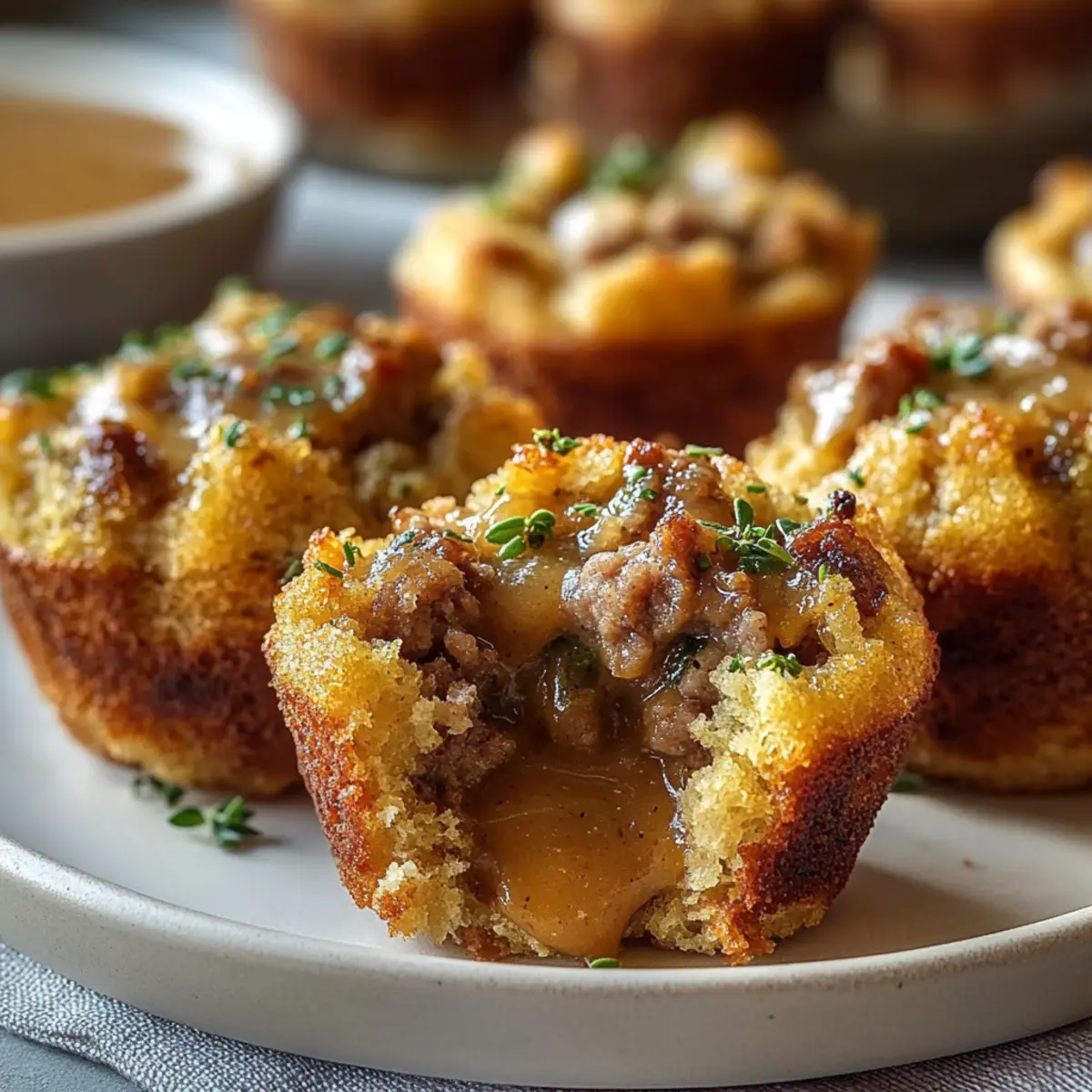 These Gravy-Stuffed Stuffing Muffins are a delightful twist on a holiday classic, sure to impress your guests!