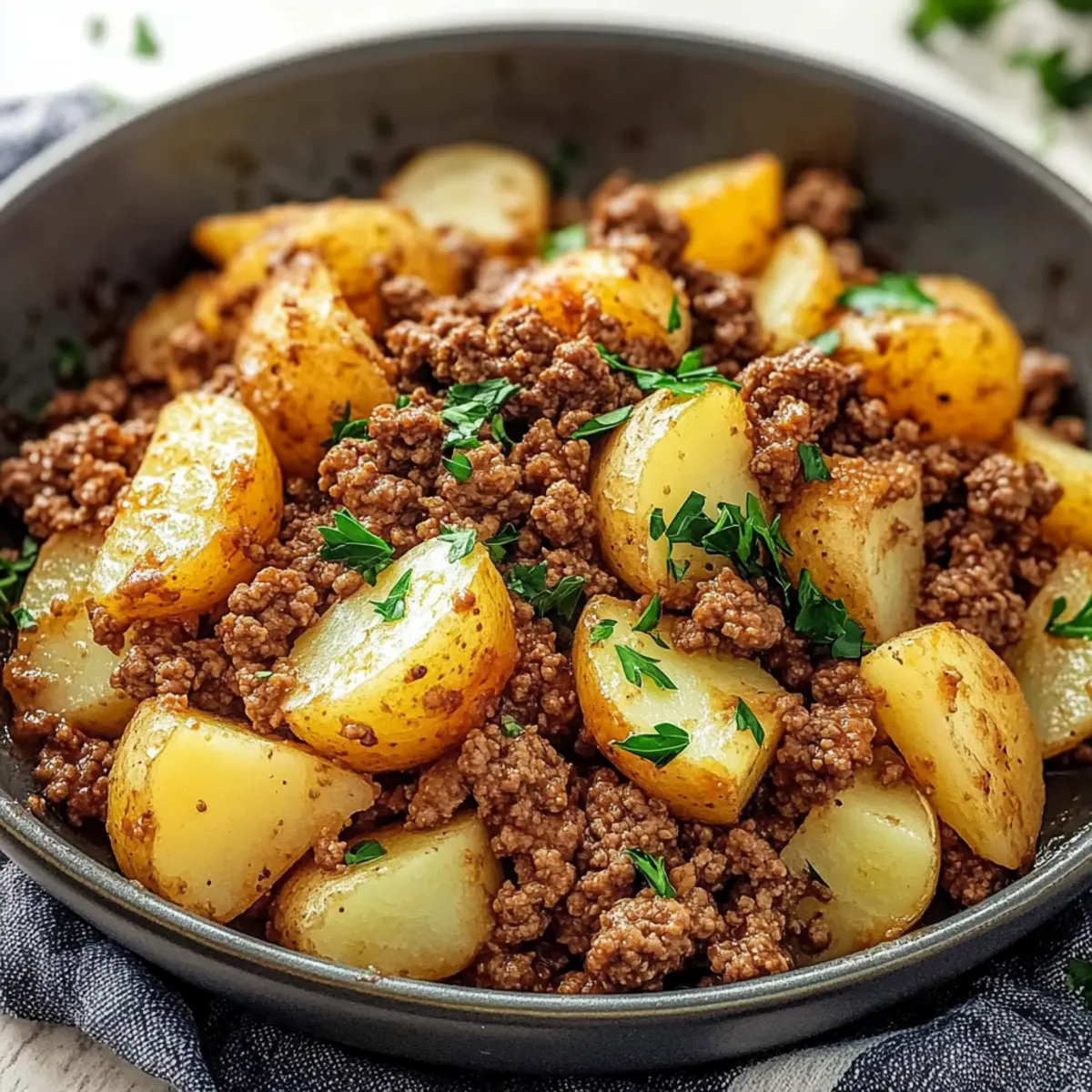 As I stood in my kitchen, the comforting aroma of sizzling ground beef filled the air, instantly transporting me to my childhood dinners. This One-Pan Ground Beef with Potatoes is a life-saver for busy weeknights, delivering heartwarming flavors without the fuss. Not only is it budget-friendly, but it’s also the kind of meal that leaves dinner plates lickably clean—a true family favorite! With minimal prep and cleanup, you can spend more time enjoying dinner with loved ones and less time scrubbing pots and pans afterward. Whether you choose classic russets or mix things up with sweet potatoes, this dish is all about versatility and satisfaction. Ready to turn simple ingredients into a weeknight masterpiece? Let’s dive into how you can create this comforting delight tonight!