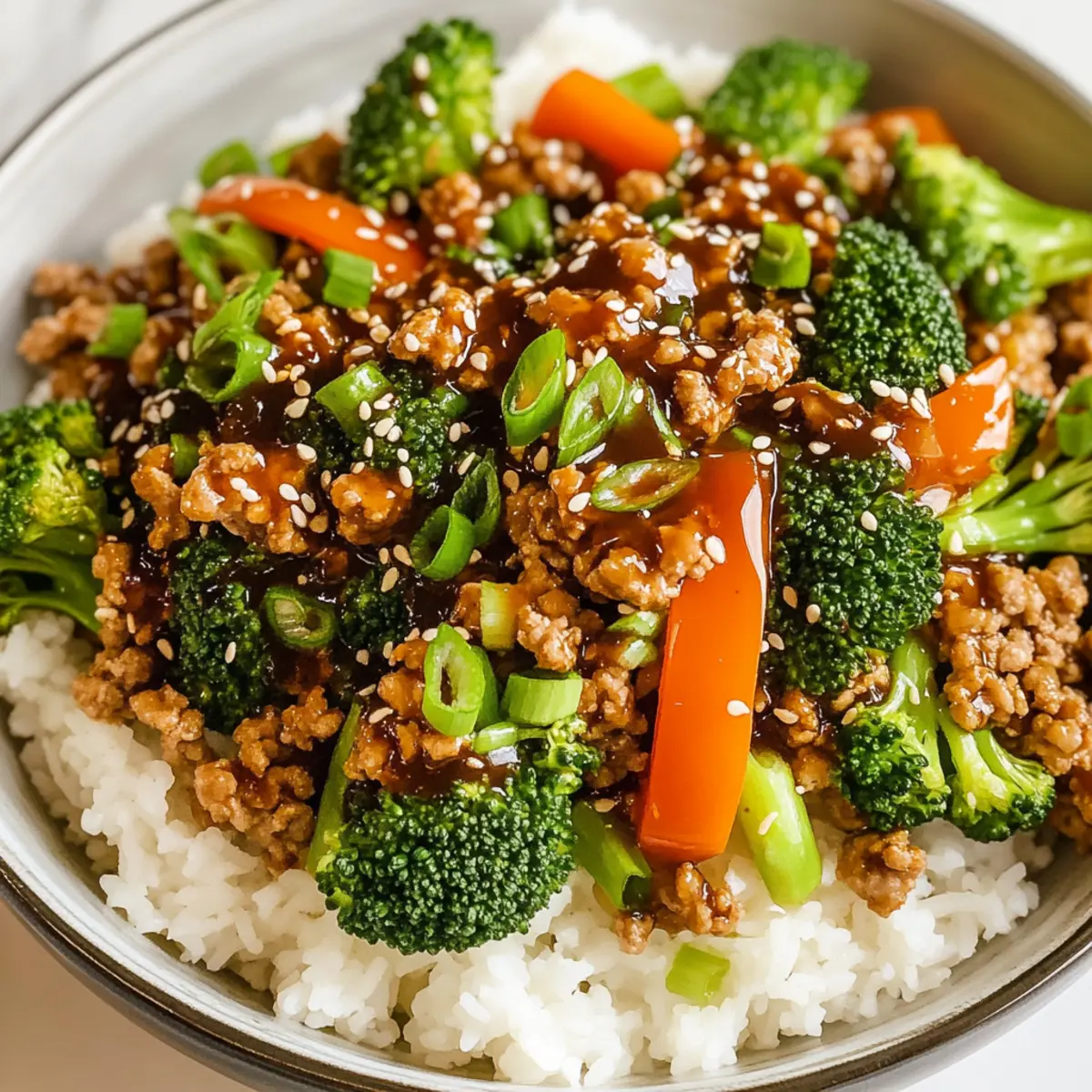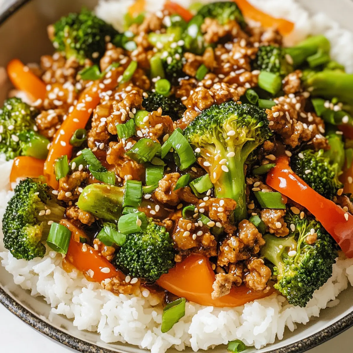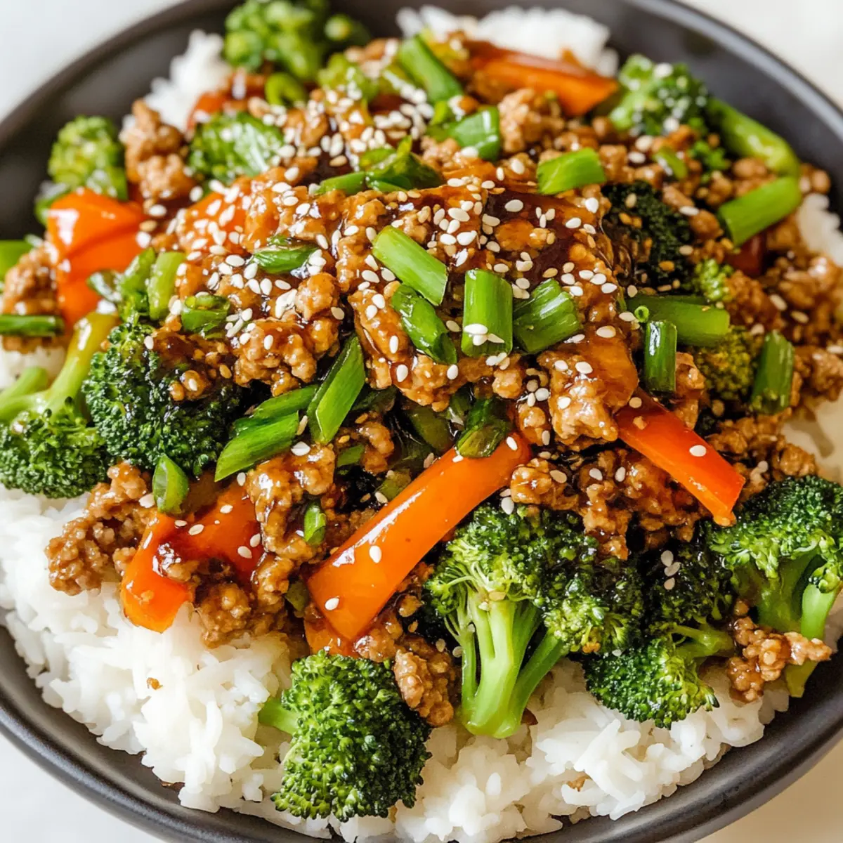 Remove the skillet from heat and serve your Ground Turkey Teriyaki Stir Fry over the prepared rice. Garnish with sesame seeds and sliced green onions for a fresh finish. This dish is not only visually appealing but also promises a fantastic flavor burst that will make your weeknight dinners enjoyable and satisfying!