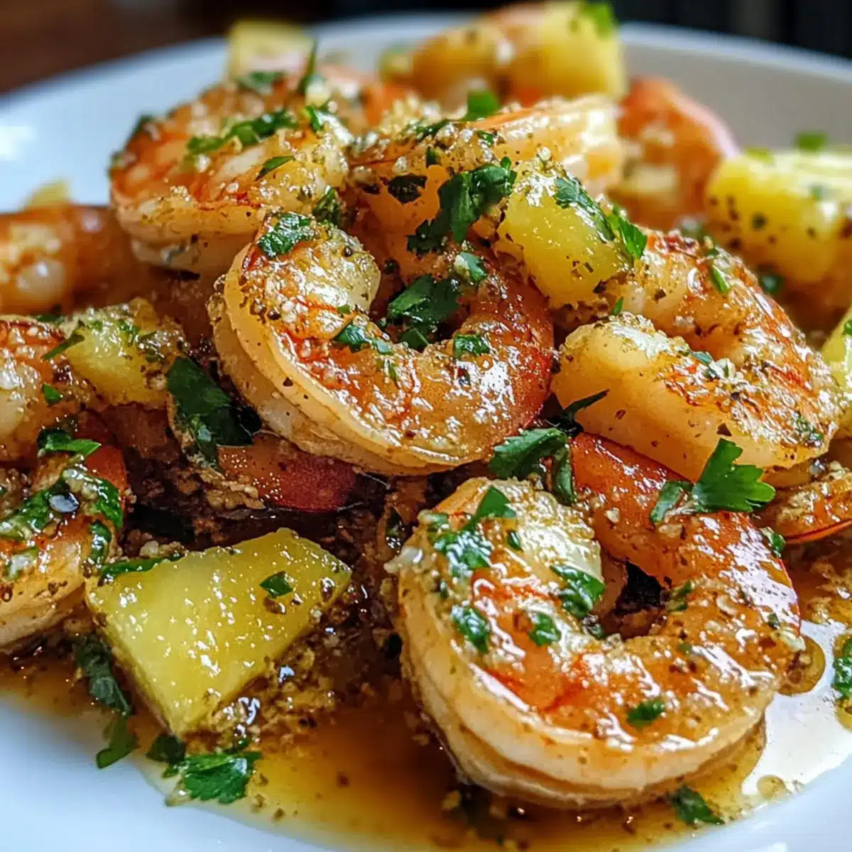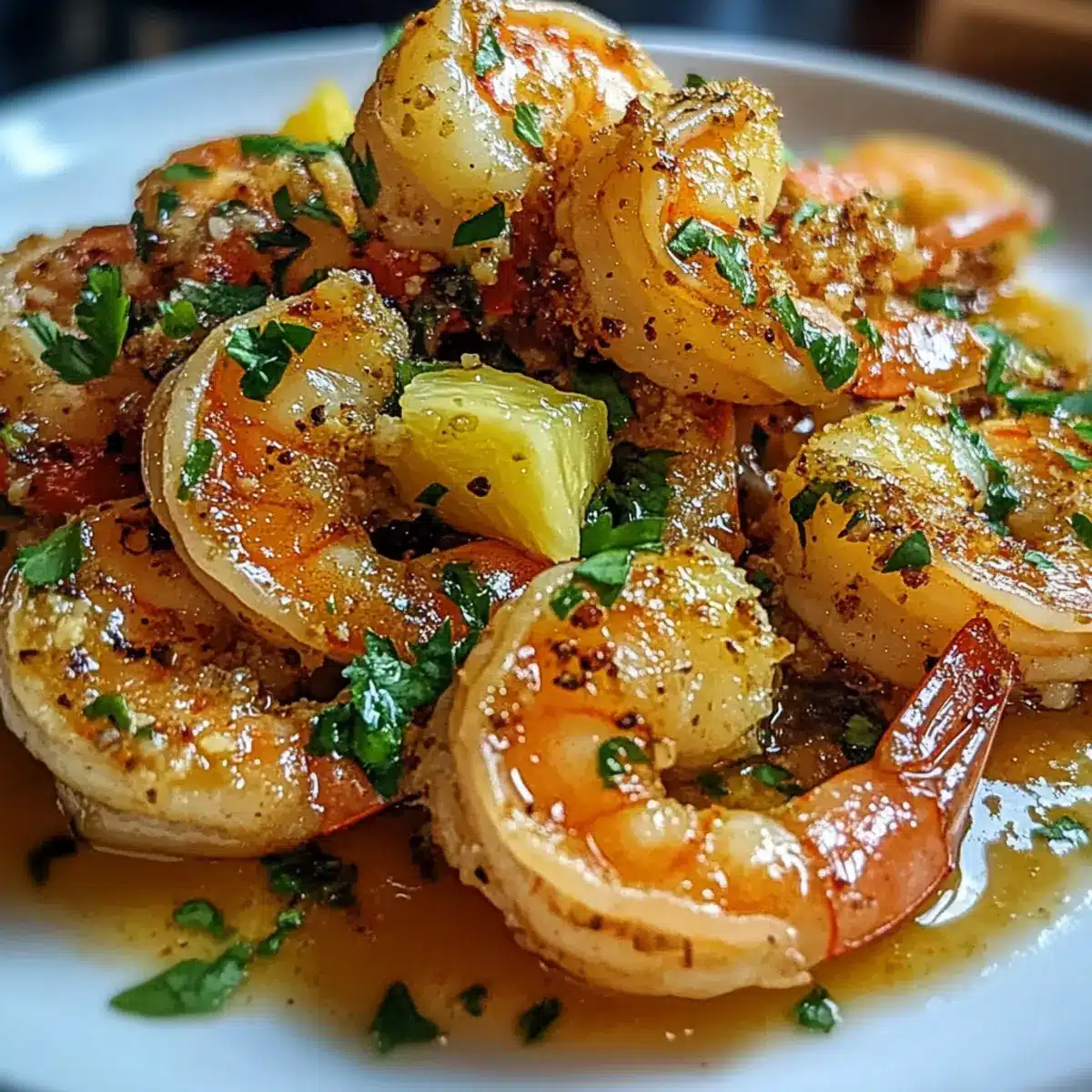 Grilled Pineapple Slices: Add a burst of sweetness with grilled pineapple, enhancing the dish’s tropical flair and creating a mouth-watering contrast with the savory shrimp.
