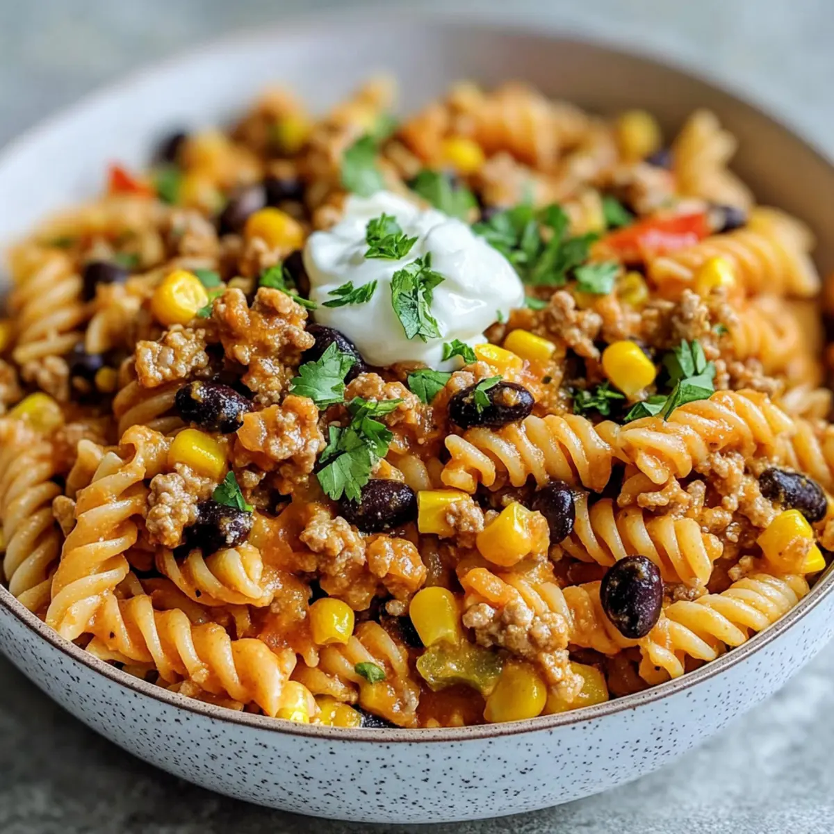 These Healthy Taco Pasta preparations are perfect for busy home cooks looking to save time during the week! You can cook the whole wheat or high-protein rotini up to 24 hours in advance and store it in an airtight container. Additionally, you can sauté the ground turkey, add the taco seasoning, black beans, corn, and salsa, then let this mixture cool before refrigerating for up to 3 days. This not only means less cooking time on a busy night but also allows the flavors to meld beautifully. When it’s time to serve, simply reheat the turkey mixture in a skillet and incorporate the pasta with the Greek yogurt until creamy — just like freshly made and just as delicious!