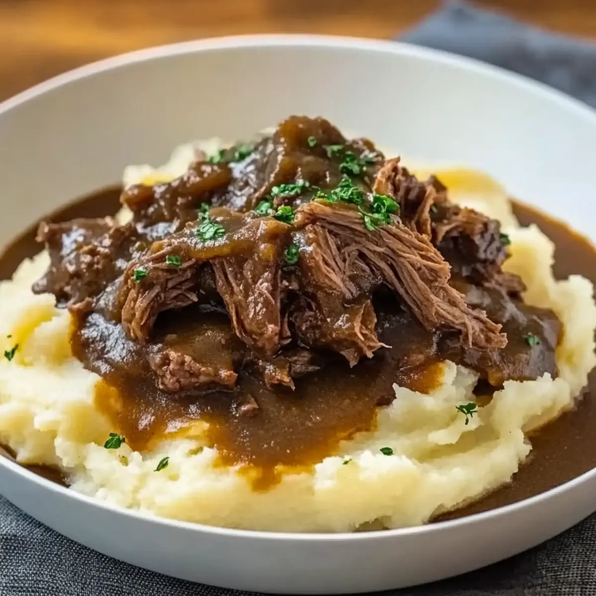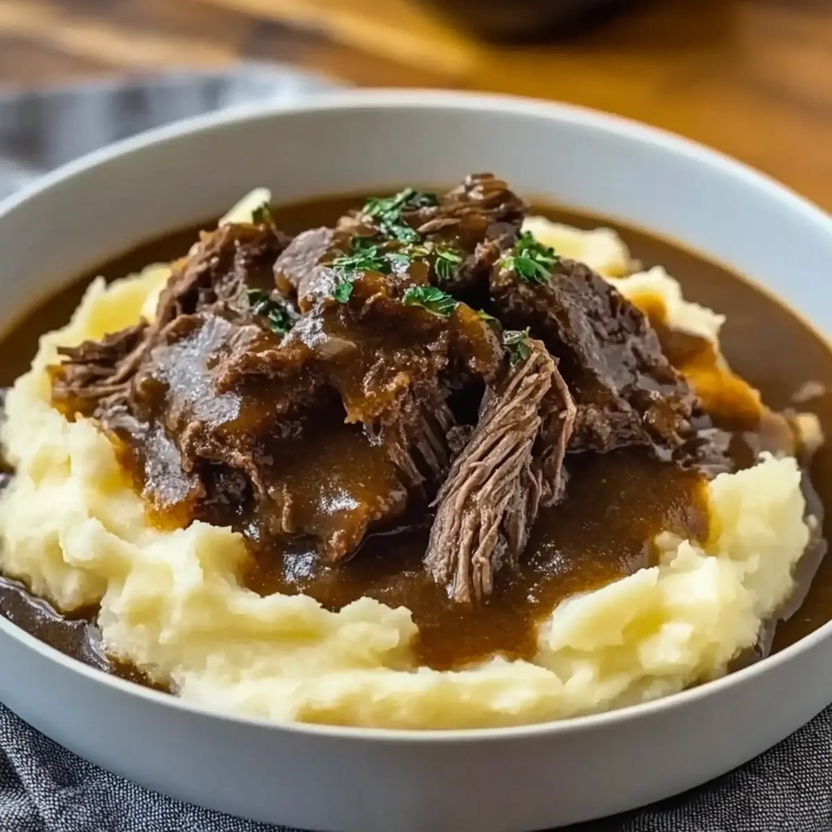 Open-Faced Sandwich: Serve the beef and gravy over toasted bread for a satisfying open-faced sandwich. Top with a sprinkle of fresh parsley for an extra pop of flavor. This makes a hearty lunch option that’s easy to put together.