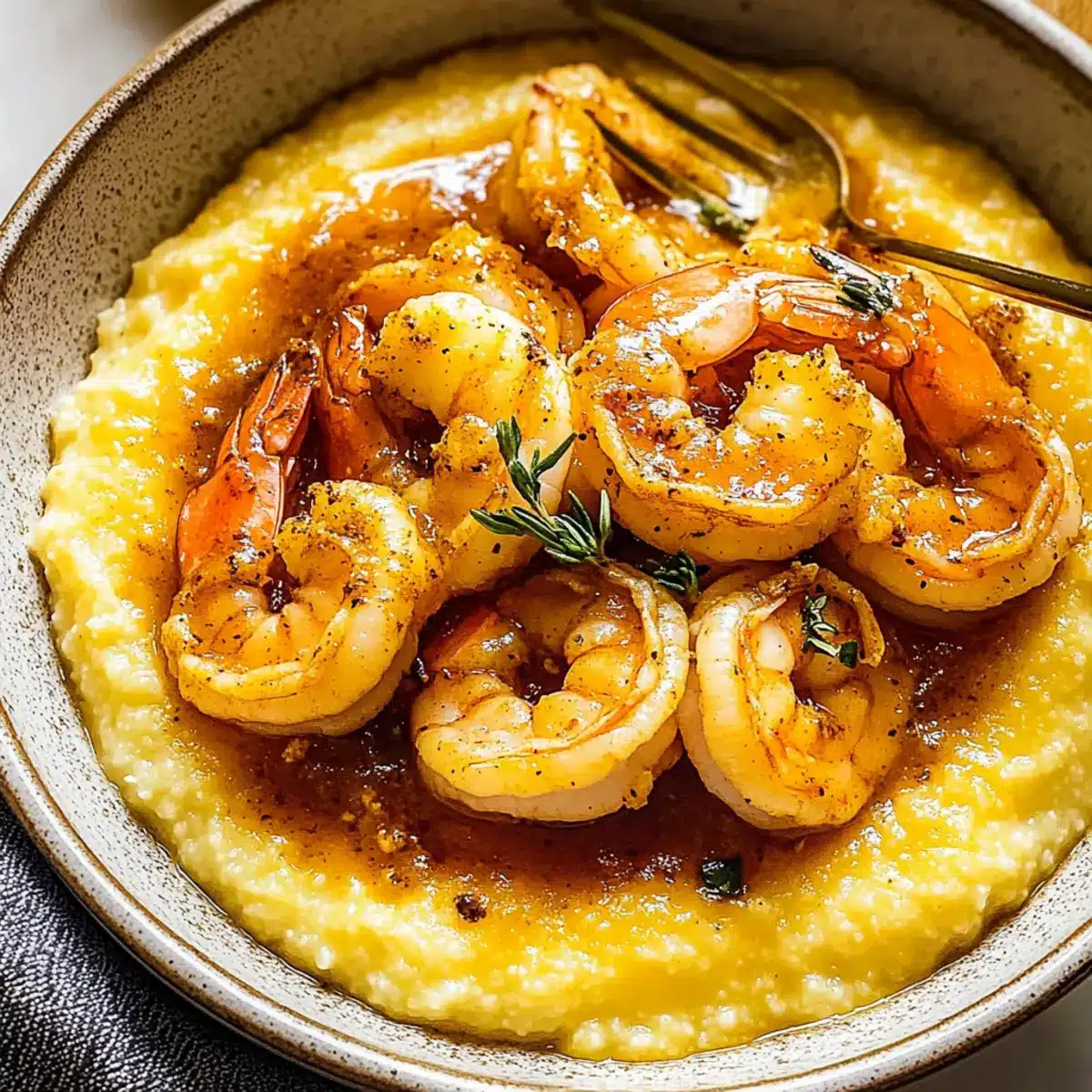 Honey Butter Cajun Shrimp with Smoked Gouda Grits Bliss