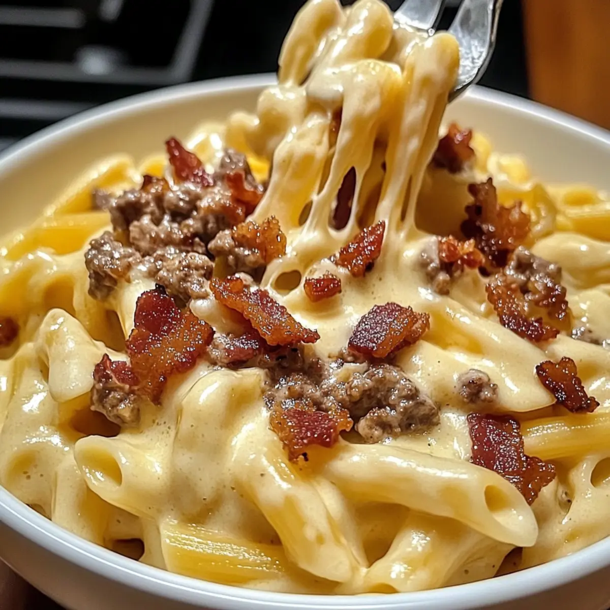 Flavor Explosion: The combination of smoky bacon, juicy beef, and creamy cheese transforms ordinary pasta into a flavor-packed dish your family will love.