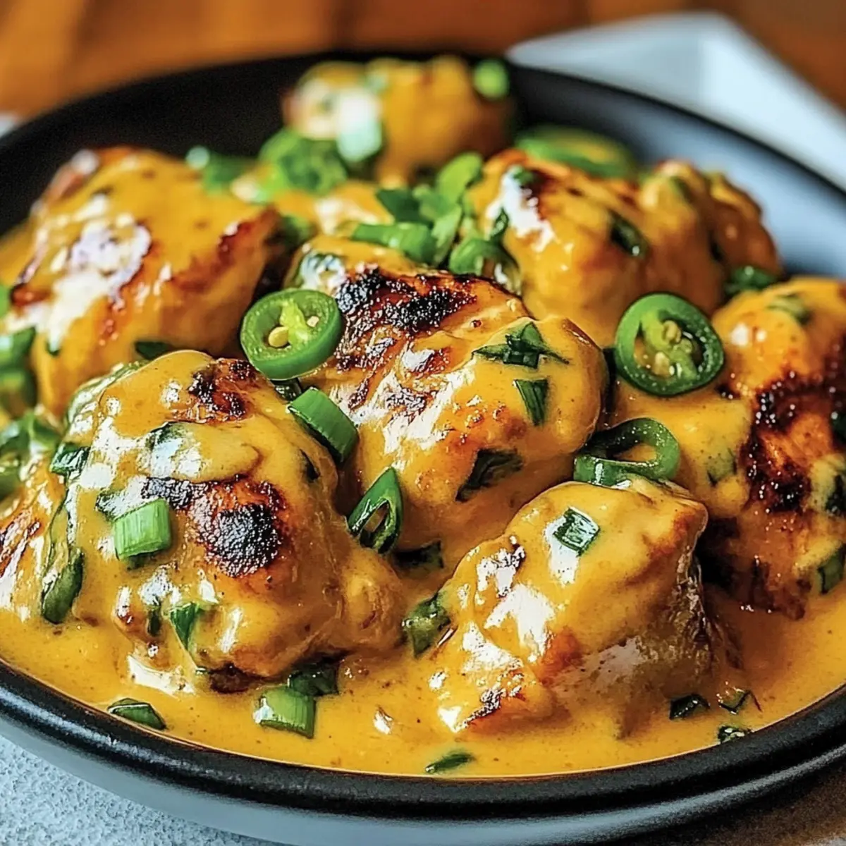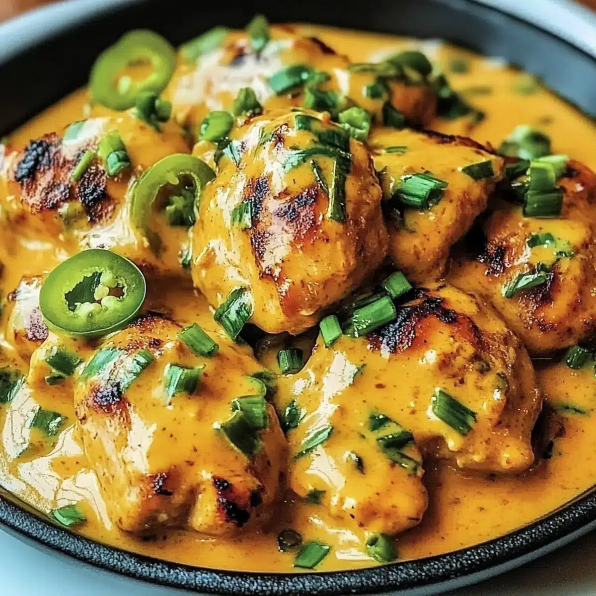 Remove the skillet from heat and garnish your dish with chopped fresh green onions and optional sliced jalapeños for an added kick. The final product should showcase tender, juicy chicken coated in a creamy sauce. Serve warm, and enjoy your delightful, homemade Low Carb Bang Bang Chicken!