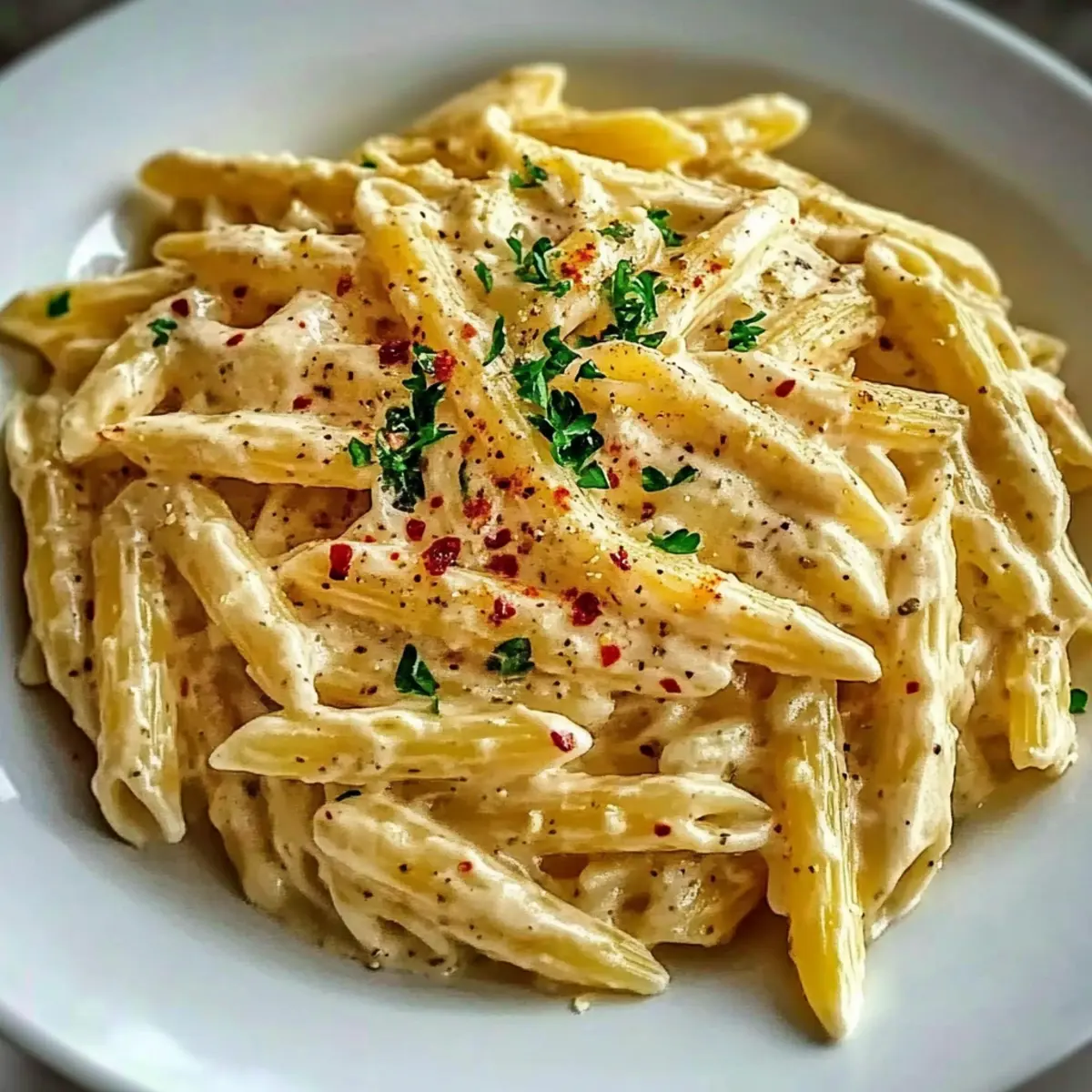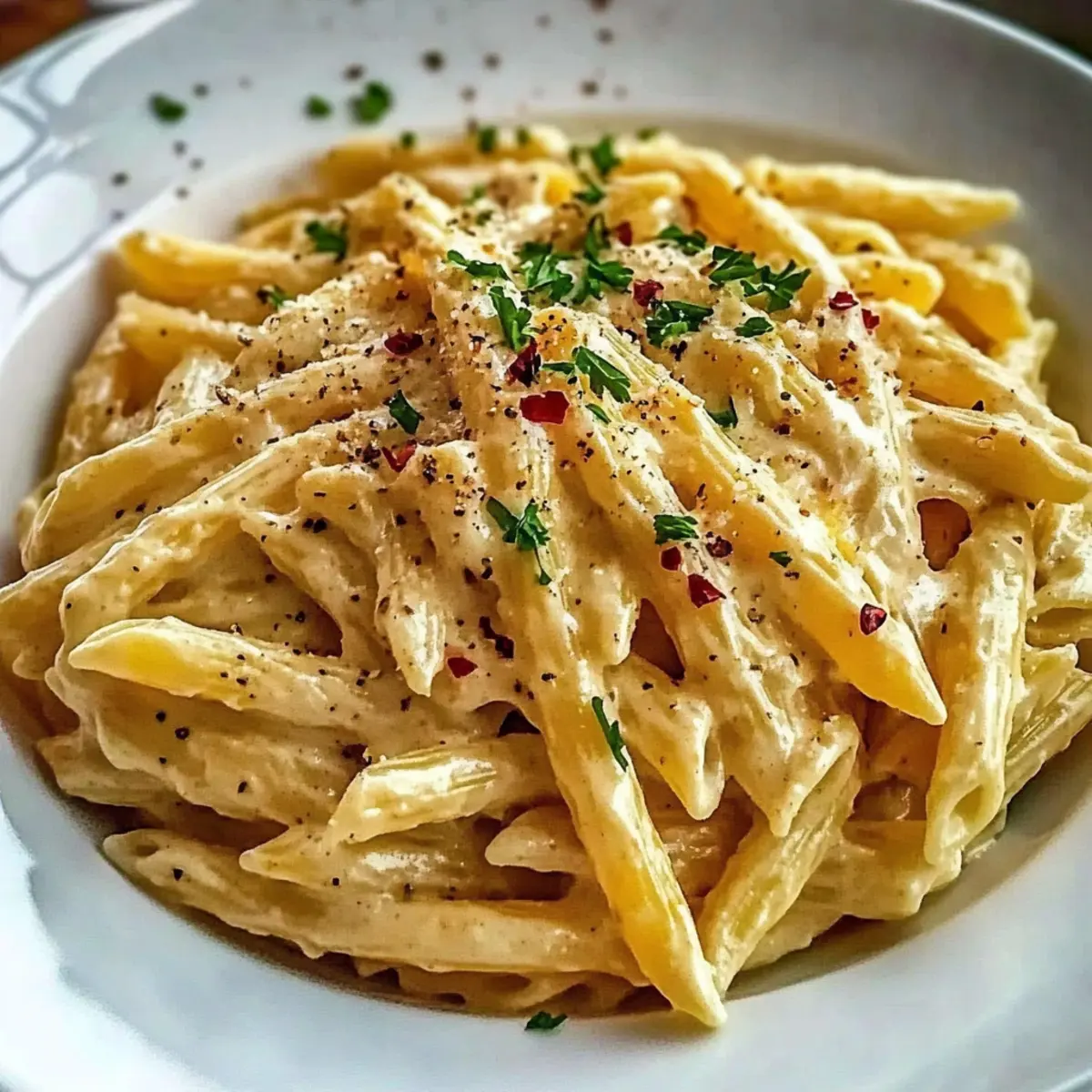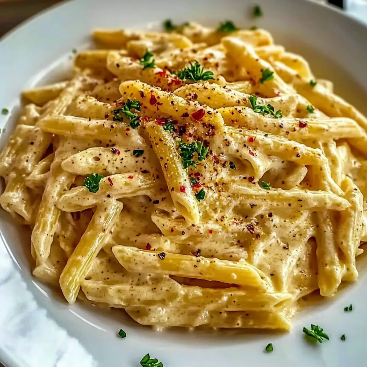 - Sprinkle chopped fresh parsley over the creamy pasta before serving hot.