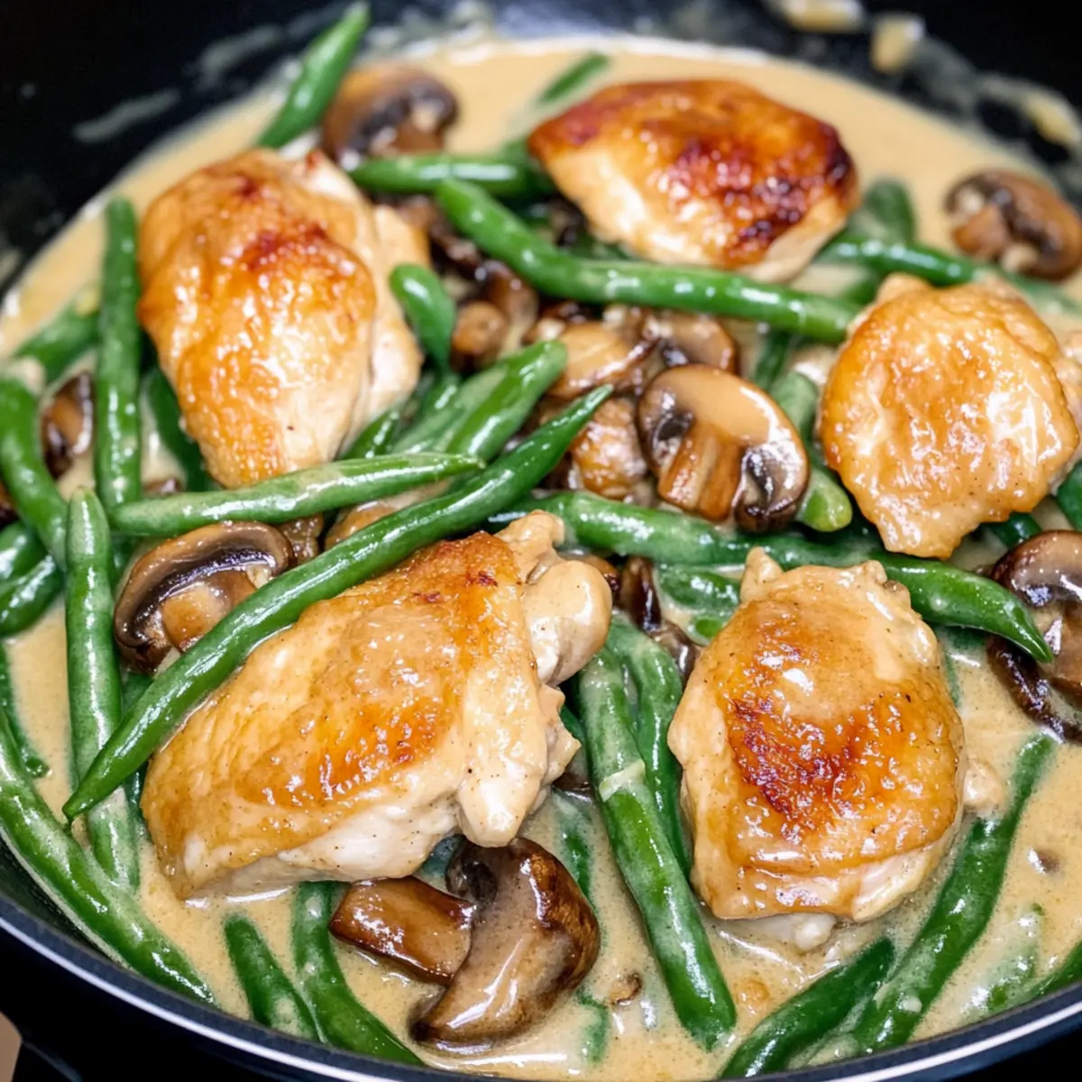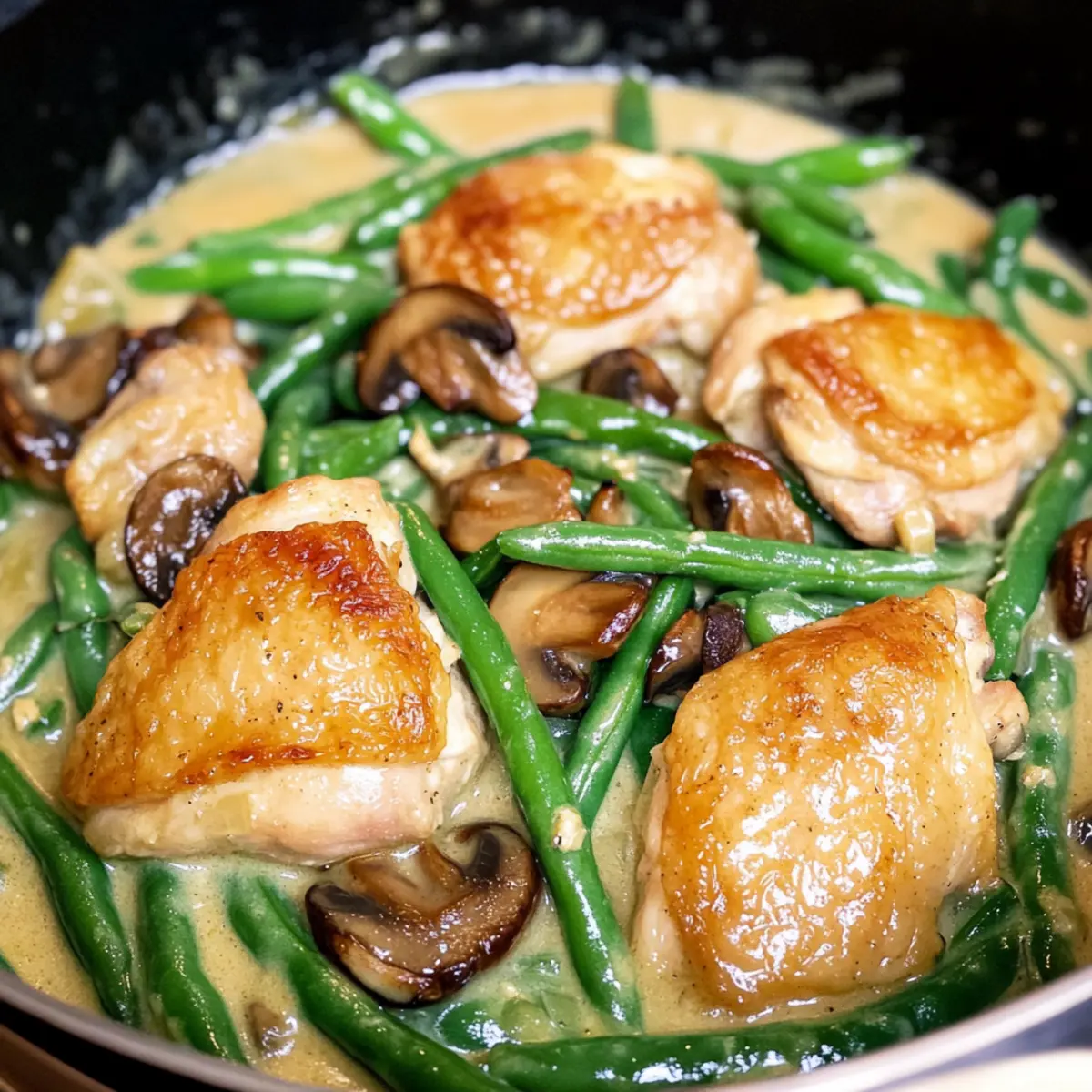 One Skillet Chicken with Green Beans and Mushrooms Magic