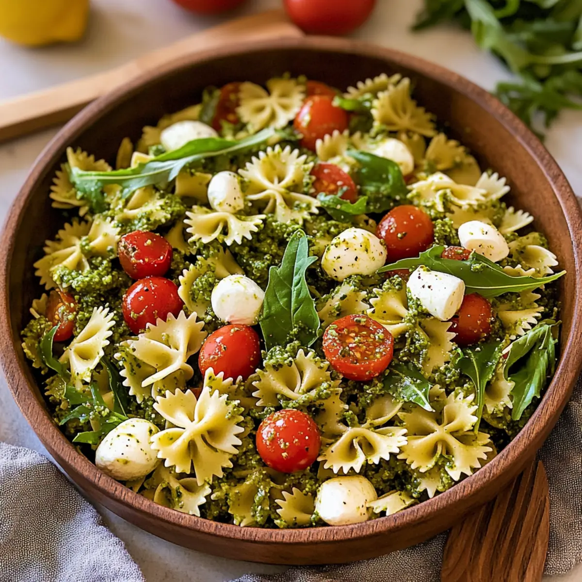 As I tossed the colorful ingredients together, the vibrant greens mixed with sun-kissed reds felt like summer on a plate. This delightful Pesto Pasta Salad is a celebration of seasonal produce, featuring mini bowtie pasta, sweet grape tomatoes, creamy fresh mozzarella, and peppery arugula. With a splash of fresh lemon juice and a dollop of homemade basil pesto, it’s not just an easy recipe; it’s also a refreshingly simple way to impress your family or guests. Perfect as a dazzling side for grilled meats or as a light lunch all on its own, this salad brings both flavor and fun to your table. Curious about how to create this beautiful dish? Let’s dive in!