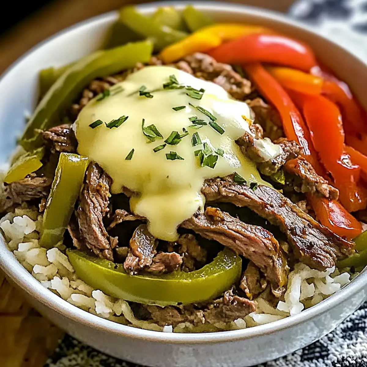 As I tore through the aisles of my local market, the scent of sizzling steak teased me from the deli section, igniting a craving for something indulgent yet wholesome. Enter my 20-Minute High-Protein Philly Cheesesteak Bowls—an easy low-carb dinner that marries comfort with nutrition. Packed with tender steak, vibrant peppers, and cheesy goodness, this recipe transforms a beloved classic into a guilt-free masterpiece boasting 35 grams of protein per serving! Whether you’re navigating a busy weeknight or meal prepping for the days ahead, these bowls deliver flavor and satisfaction without the carb overload. Are you ready to whip up a dish that will leave both your belly and taste buds singing?