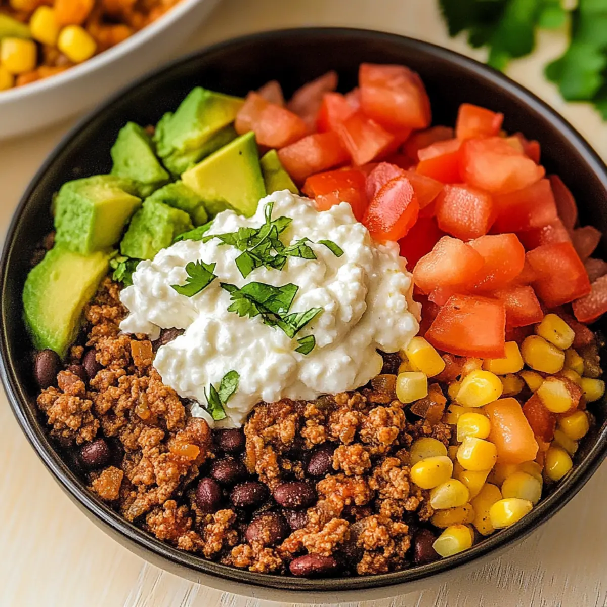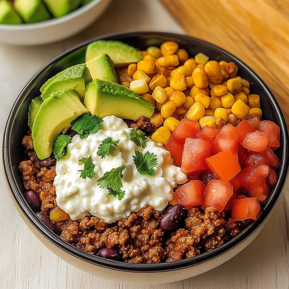 Southwest Ground Beef Bowl with Creamy Cottage Cheese Queso Bliss