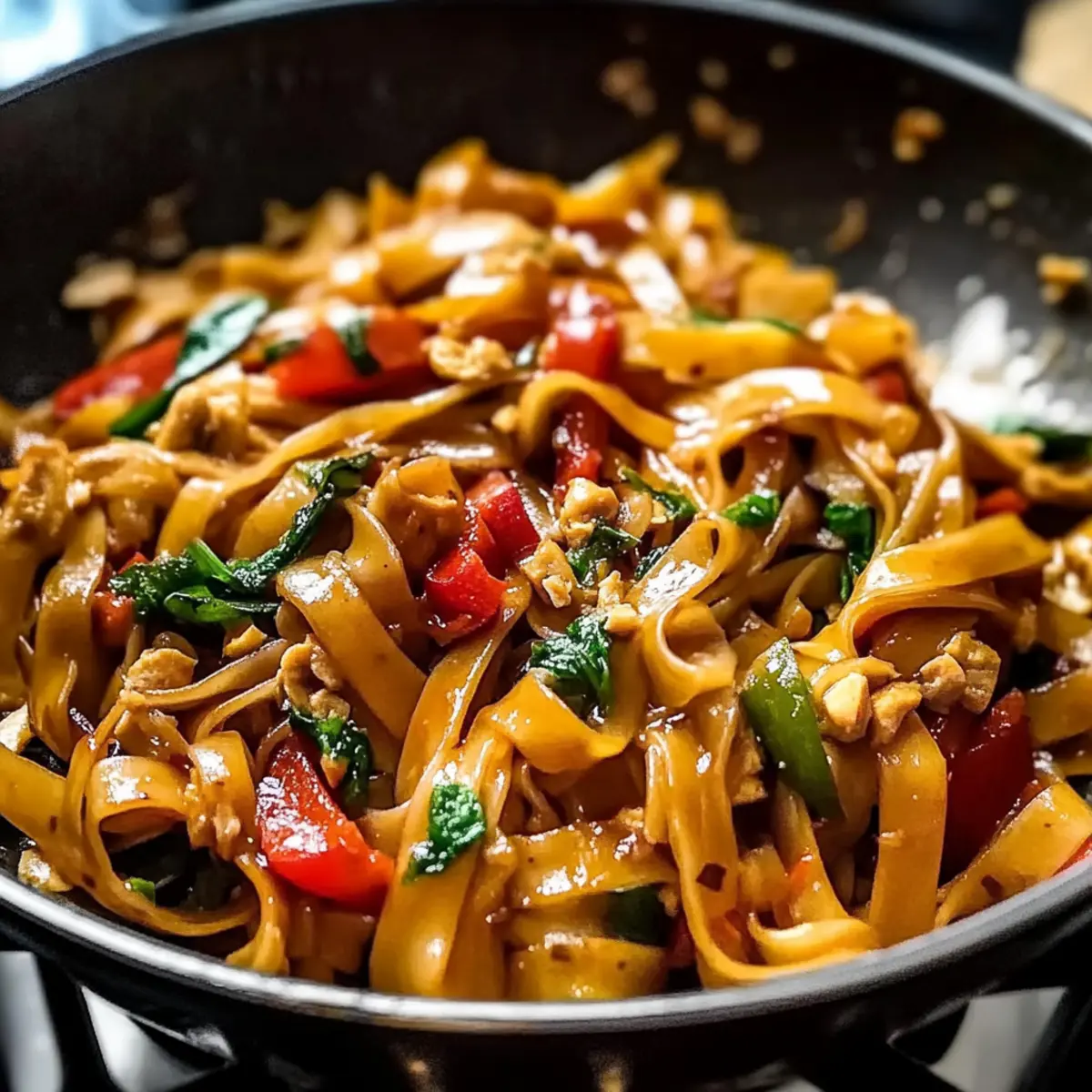 Feel free to get creative! You can add a variety of colorful vegetables such as broccoli, snap peas, or carrots. Simply sauté your chosen veggies until tender-crisp along with the bell peppers. This not only enhances nutrition but also adds delightful textures and flavors, making every bite of your Spicy Vegan Drunken Noodles even more exciting!